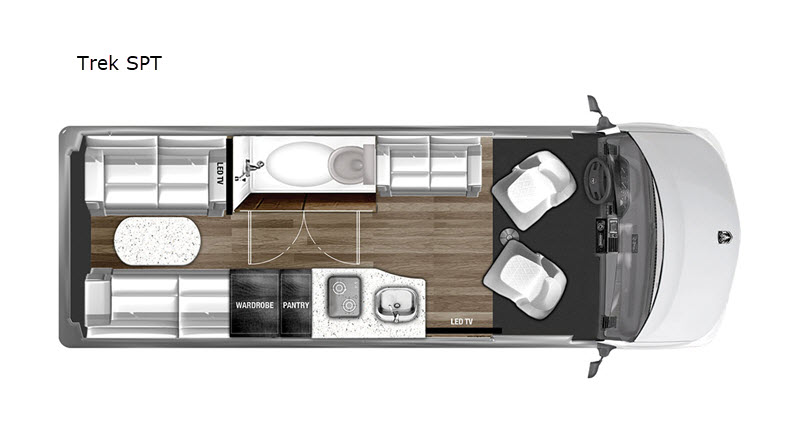 Get ready for a tour of the countryside in this motorhome that will comfortably sleep four people. The lounge seats at the rear of the unit are perfect for relaxing and the table included provides a place to enjoy breakfast at each morning. You'll enjoy LED lighting throughout, and a 9 cu.ft. microwave to prepare a quick meal. After a day of traveling, clean up in the wet bath that includes a glass shower door to give that touch of home.